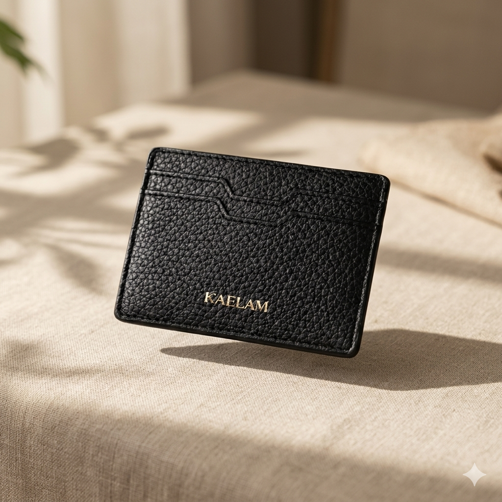 A slim leather cardholder designed for everyday order. Crafted to carry cards and cash without bulk. A small object that changes how you carry yourself.